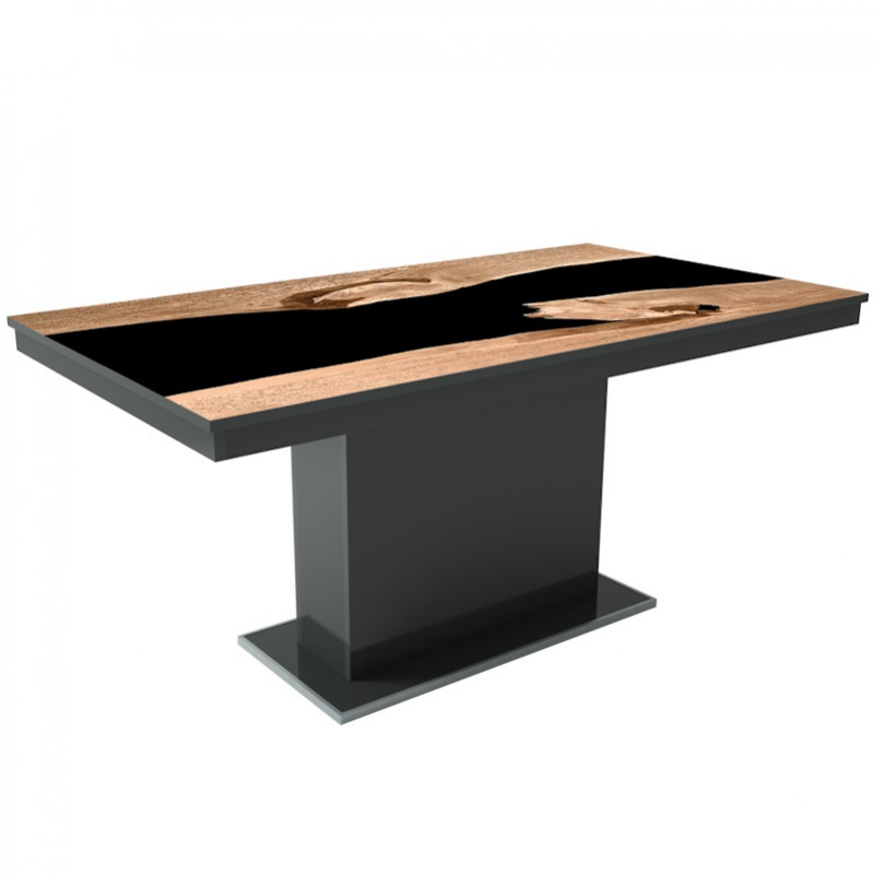 MFLP-DM Üveg étkezőasztal Magasfényű antracit - Epoxy artisan fekete