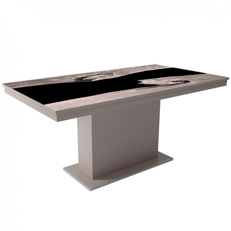 MFLP-DM Üveg étkezőasztal Magasfényű cappuccino - Epoxy san remo fekete