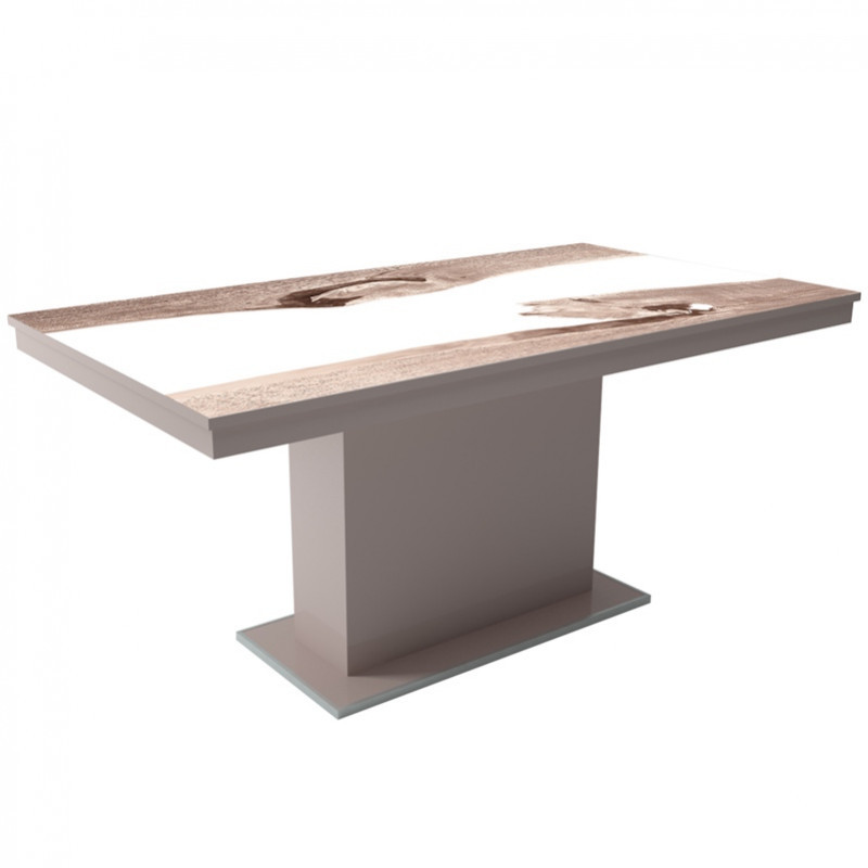 MFLP-DM Üveg étkezőasztal Magasfényű cappuccino - Epoxy sonoma fehér