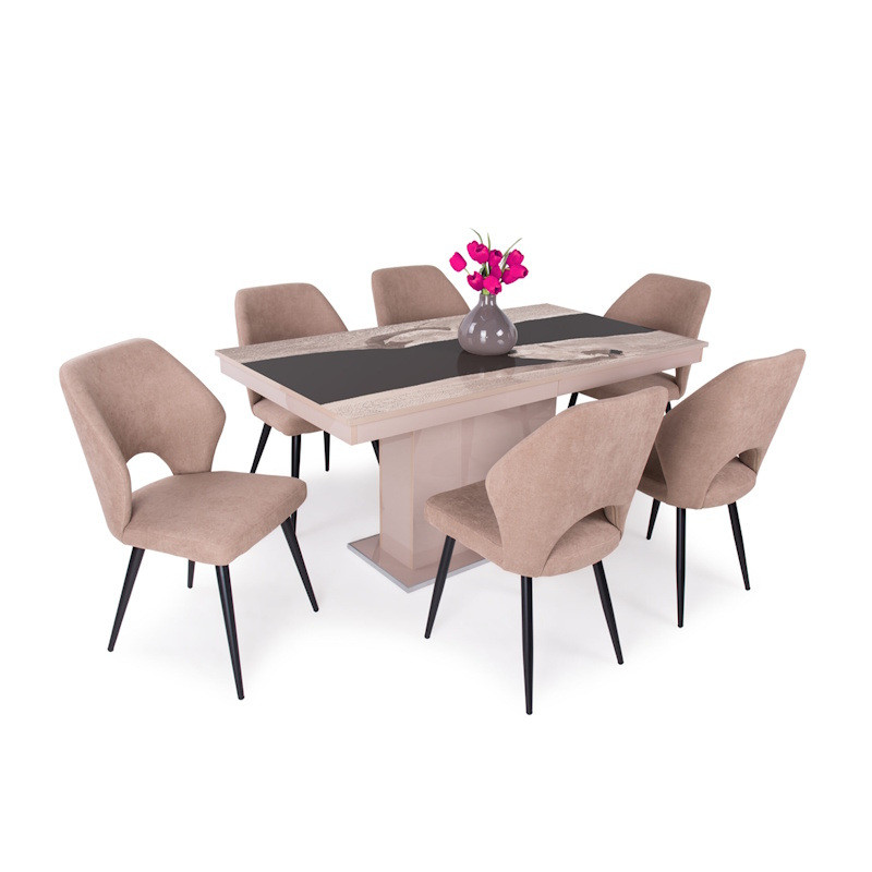 MFLP-DM Üveg étkezőasztal Magasfényű fehér - Canyon tölgy