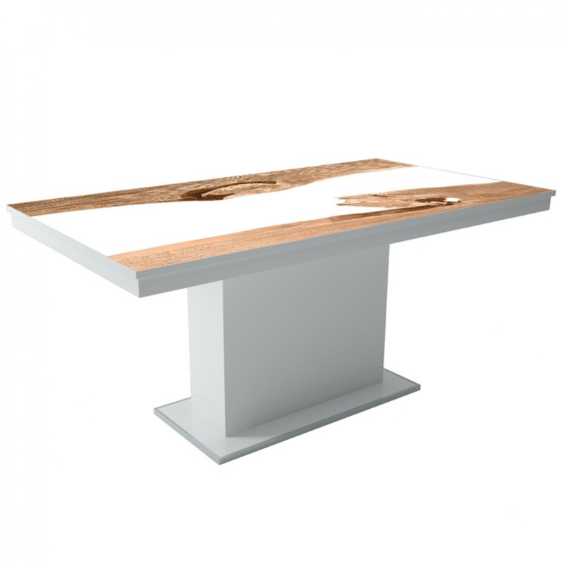 MFLP-DM Üveg étkezőasztal Magasfényű fehér - Epoxy artisan fehér