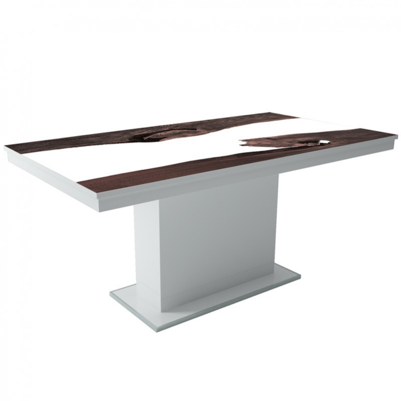 MFLP-DM Üveg étkezőasztal Magasfényű fehér - Epoxy iszap tölgy fehér