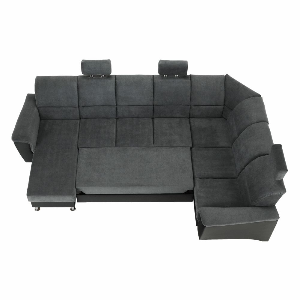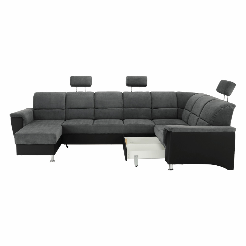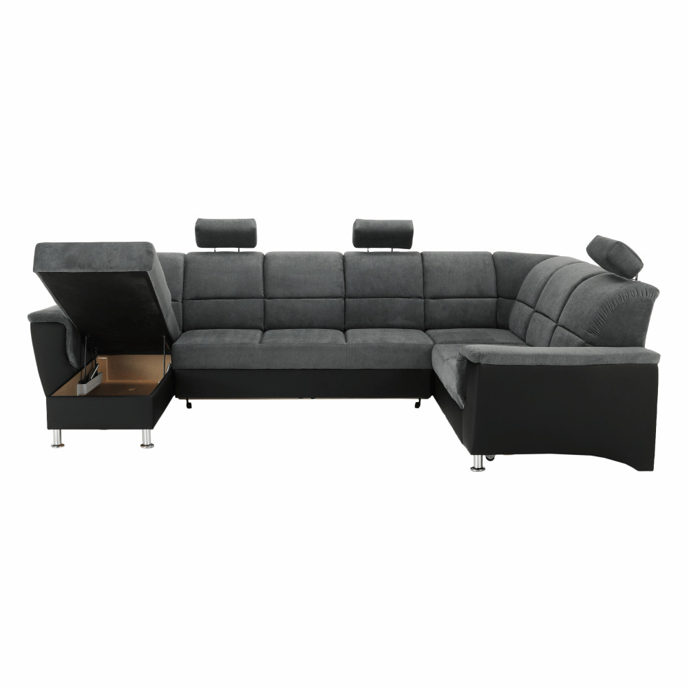 Az egyedi sötétszürke Matrix szövet és a fekete műbőr színkombinációnak köszönhetően könnyen beillik minden nappaliba. Az ülőgarnitúra a közkedvelt U alakban készült.