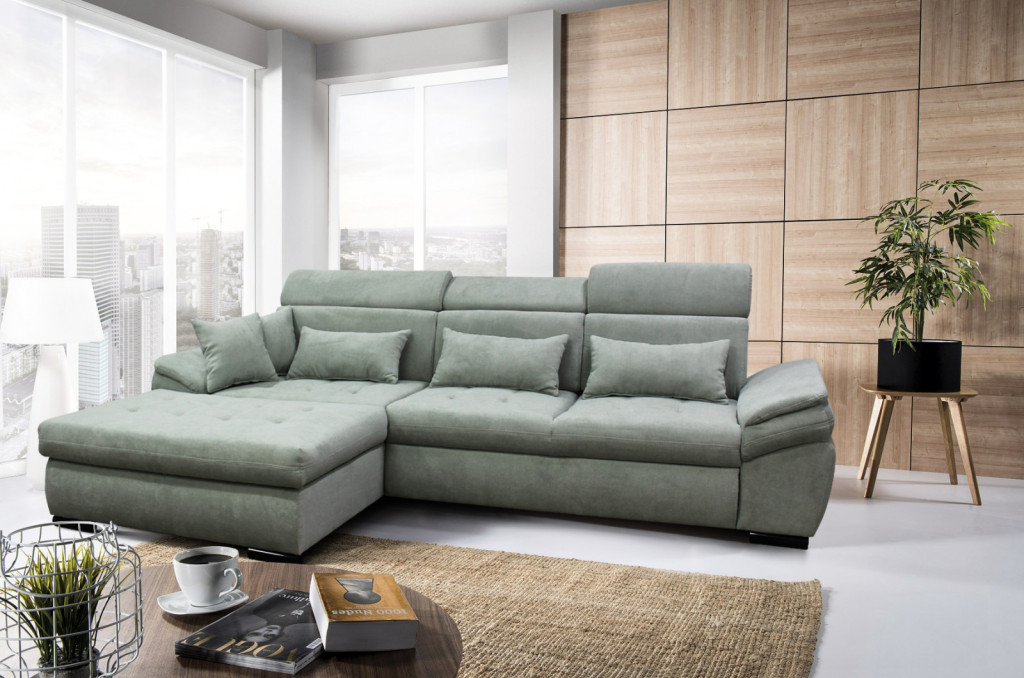 Ágyneműtartós rugós sarokkanapé zöld 405739
