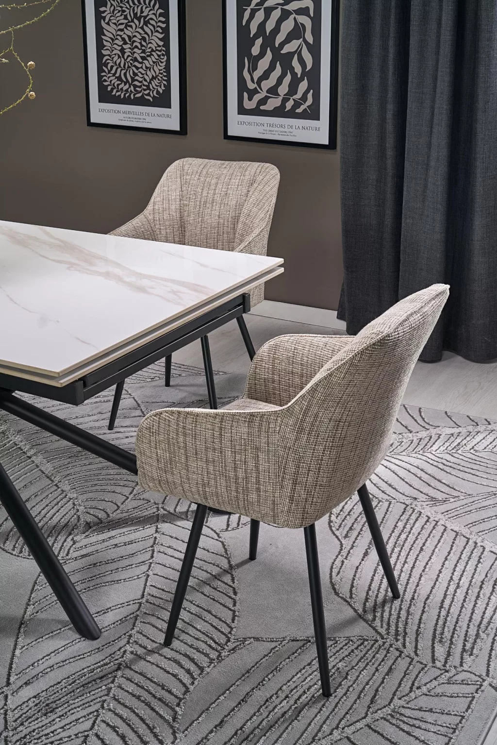 Az asztal váza masszív szerkezetű, porszórt acélból készült elegáns fekete színben. A világos asztallap és a sötét lábak kontrasztja merész, modern megjelenést kölcsönöz az asztalnak, amely tökéletesen kiegészíti a különféle belső stílusokat, a minimalista stílustól a loft stílusig.