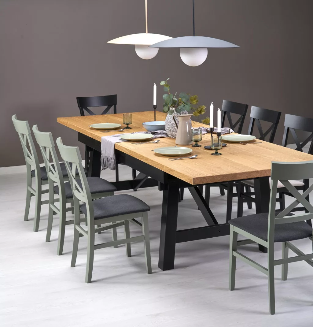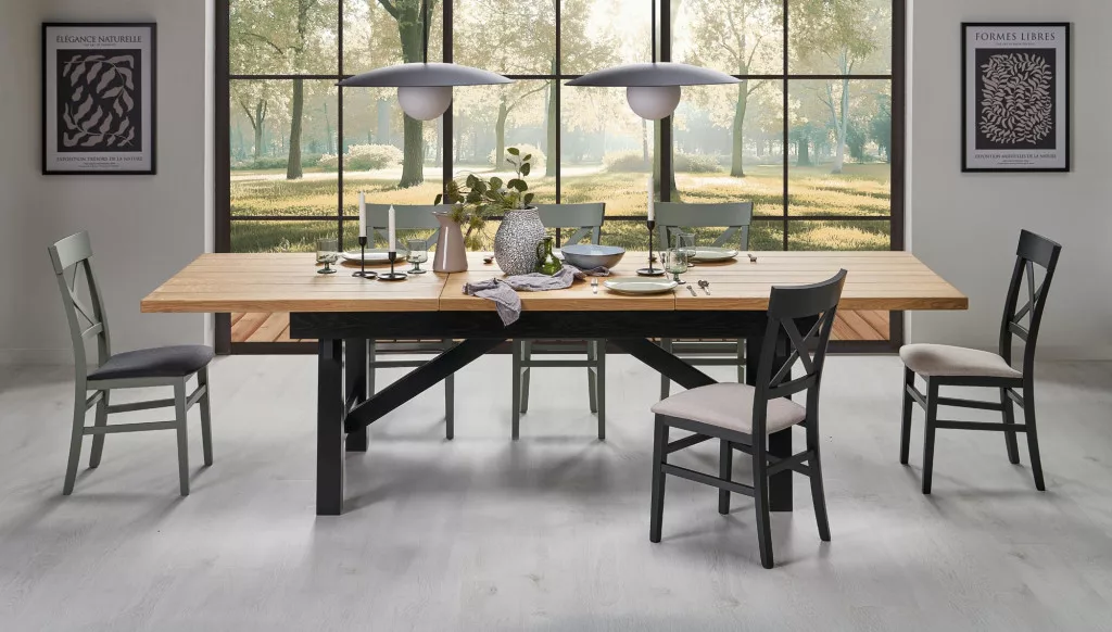 Ez az asztal a modern farmhouse stílus esszenciája – a rusztikus belső terek otthonosságát ötvözi a modern design elegáns egyszerűségével.