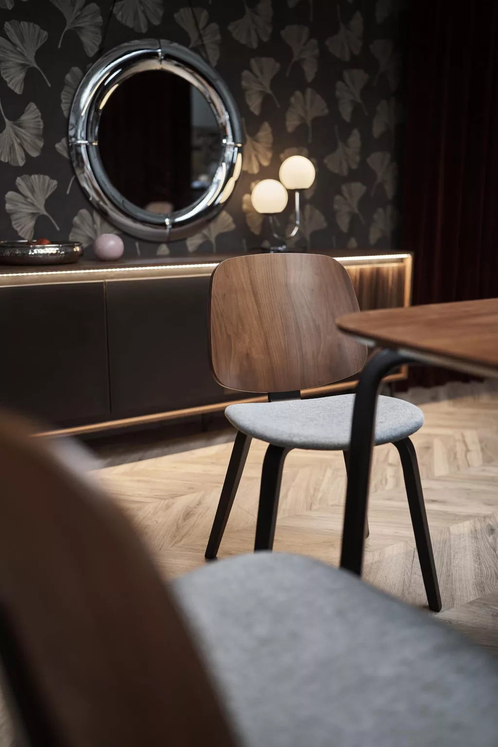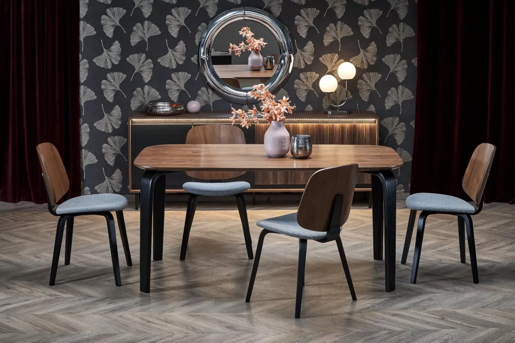 A dió színű asztallap és fekete lábak párosítása egy stílusos és időtálló étkezőasztalt eredményez, mely kiválóan passzol modern vagy klasszikus enteriőrökbe egyaránt.