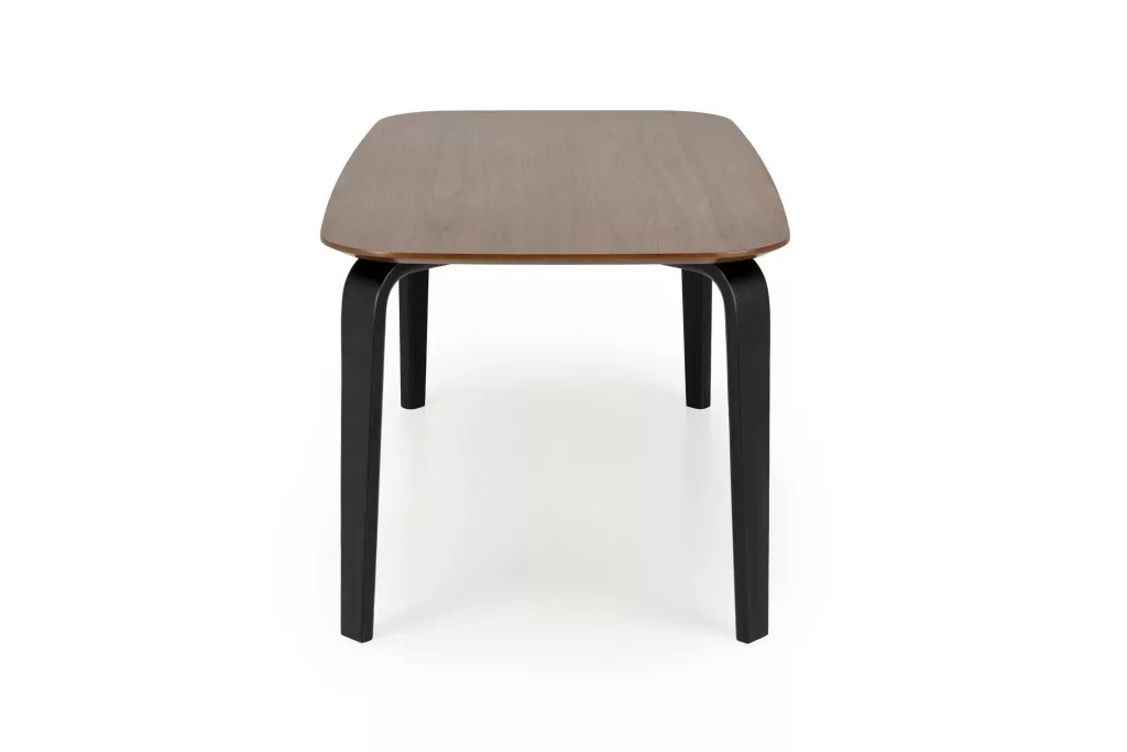 A dió színű asztallap természetes és meleg hangulatot áraszt, míg a fekete lábak kontrasztot és eleganciát kölcsönöznek az asztalnak.