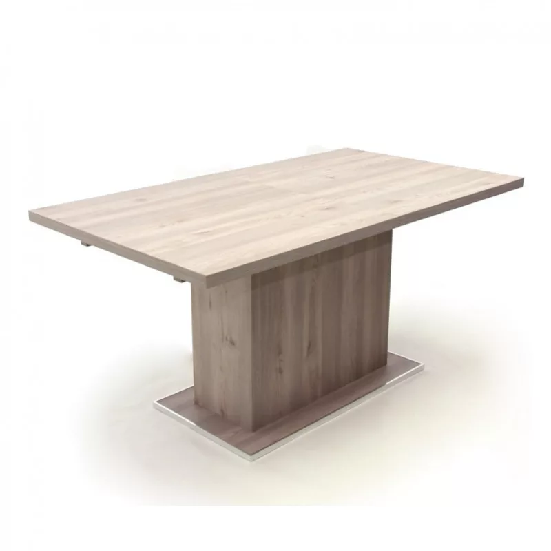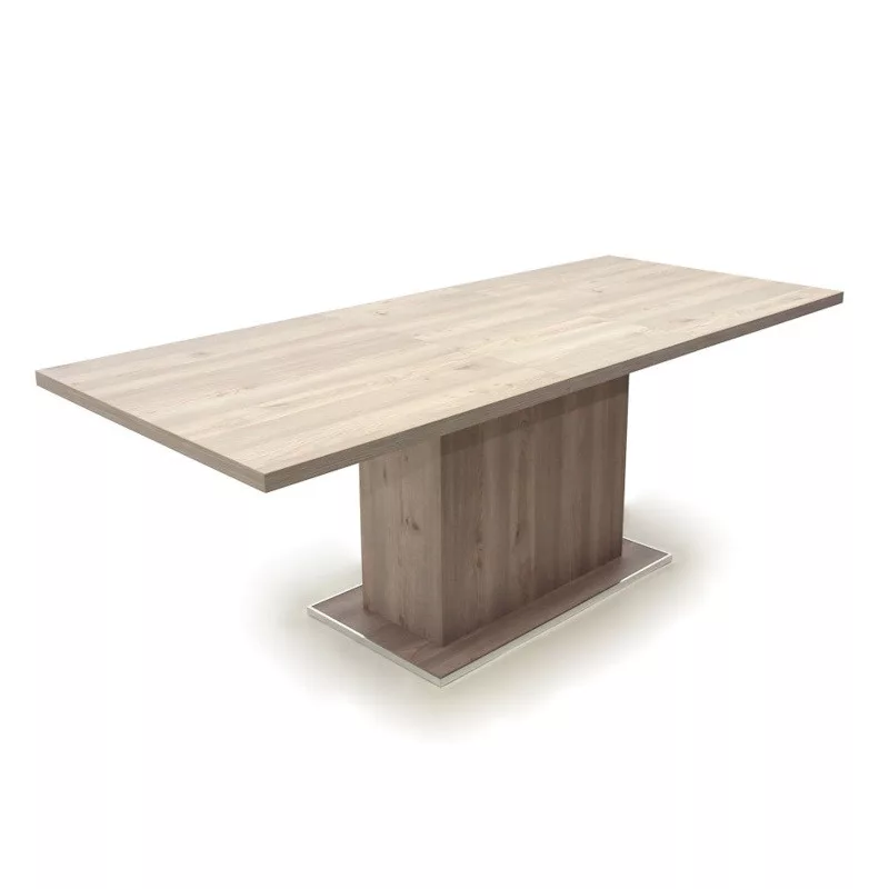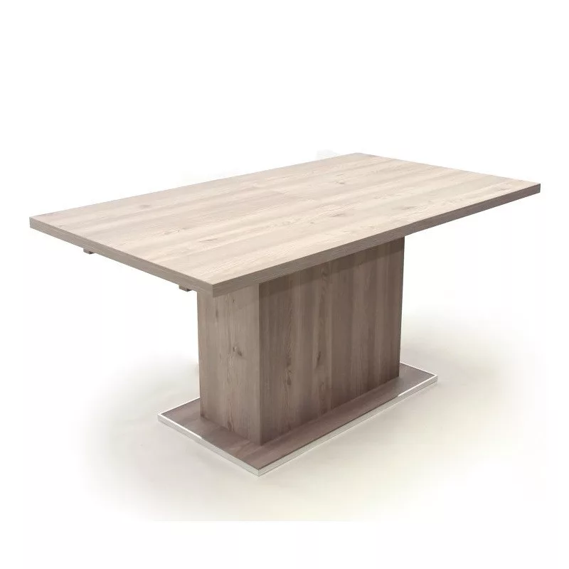 Ennek az asztalnak a lábazata és az asztallapja laminált faforgácslapból készült ABS élzárással, duplungolt kivitellel és PU ragasztási technológiával (Víz-, pára és hőálló, tartós kötést biztosít, ennek köszönhetően a bútorok élettartalmát jóval megnöveli!). Nagyobbítás, fém vasalattal történik. A plusz betét az asztal alatt tárolható.