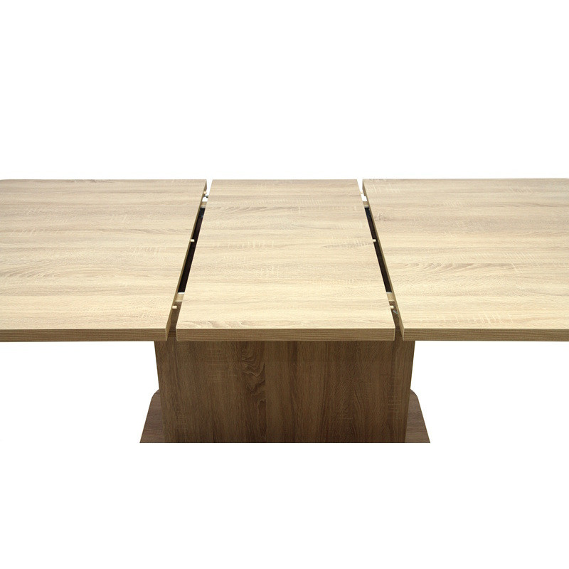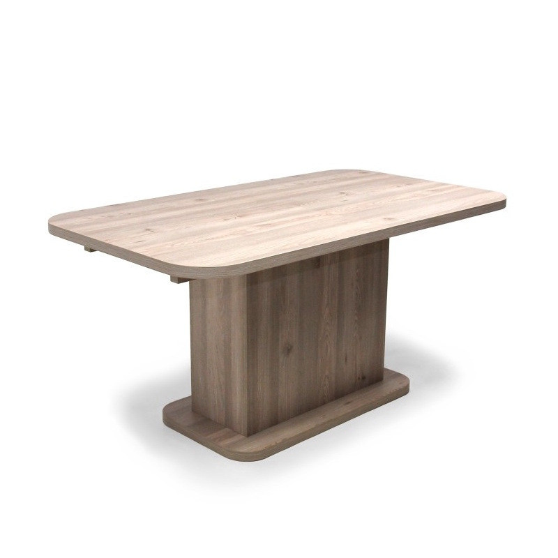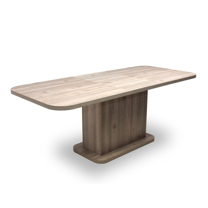 Ennek az étkezőasztalnak a lábazata és az asztallapja laminált faforgácslapból készült ABS élzárással, duplungolt kivitellel és PU ragasztási technológiával (Víz-, pára és hőálló, tartós kötést biztosít, ennek köszönhetően a bútorok élettartalmát jóval megnöveli!). Nagyobbítás, fém vasalattal történik. A plusz betét az asztal alatt tárolható.