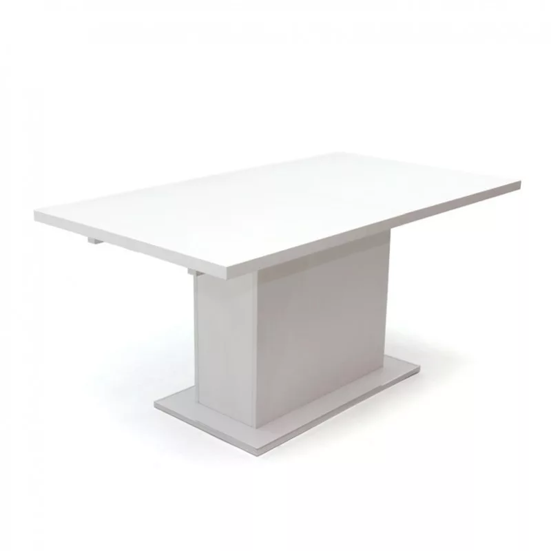 Fehér színű, laminált faforgácslapból készült, modern fa étkezőasztal ABS élzárással.