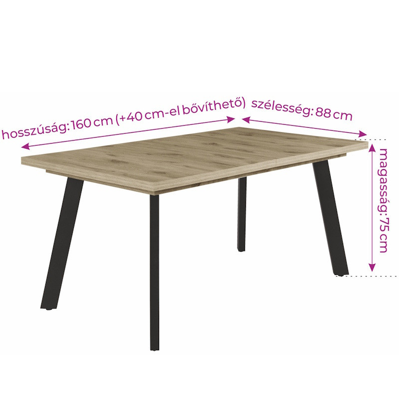 Fa étkezőasztal fekete lábbal Cotta cremona T28825-2-7042