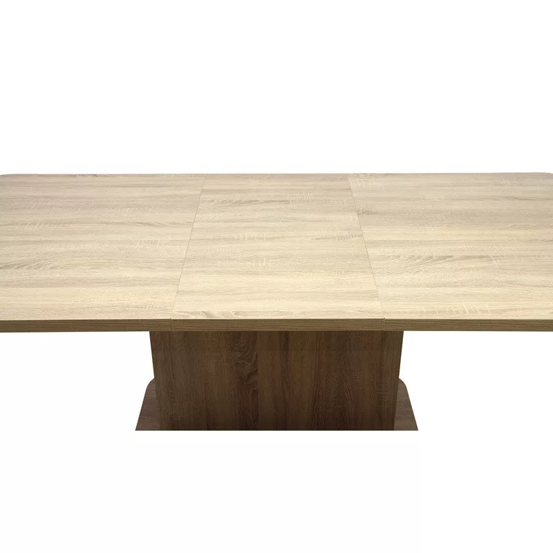 Ennek az asztalnak a lábazata és az asztallapja laminált faforgácslapból készült ABS élzárással, duplungolt kivitellel és PU ragasztási technológiával (Víz-, pára és hőálló, tartós kötést biztosít, ennek köszönhetően a bútorok élettartalmát jóval megnöveli!). Nagyobbítás, fém vasalattal történik. A plusz betét az asztal alatt tárolható.
