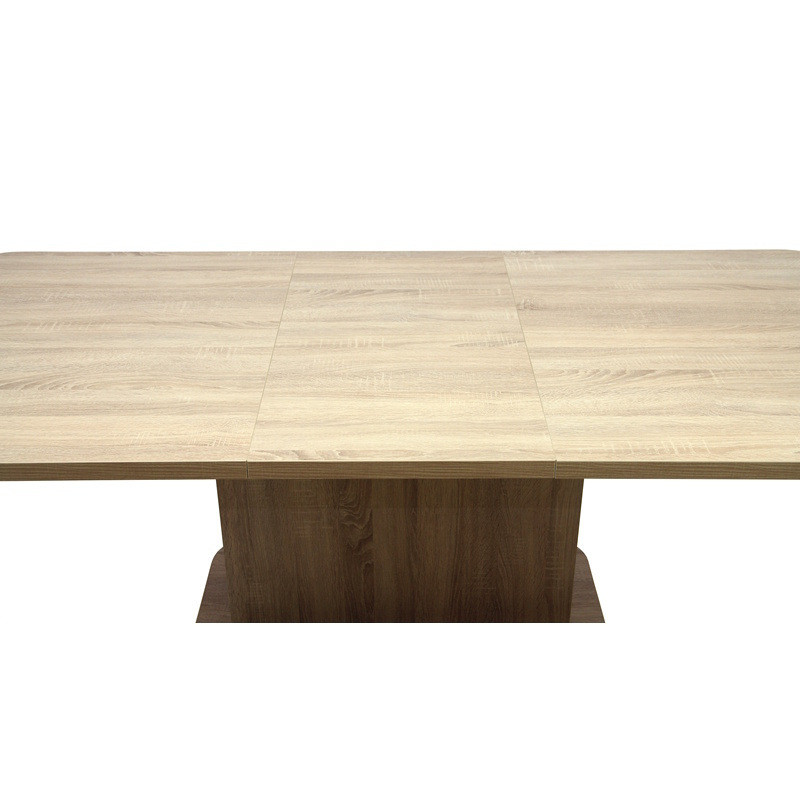 Ennek az étkezőasztalnak a lábazata és az asztallapja laminált faforgácslapból készült ABS élzárással, duplungolt kivitellel és PU ragasztási technológiával (Víz-, pára és hőálló, tartós kötést biztosít, ennek köszönhetően a bútorok élettartalmát jóval megnöveli!). Nagyobbítás, fém vasalattal történik. A plusz betét az asztal alatt tárolható.