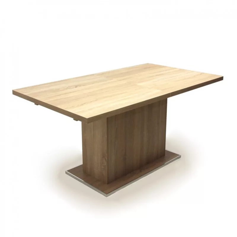 Sonoma tölgy színű, laminált faforgácslapból készült, modern fa étkezőasztal ABS élzárással.