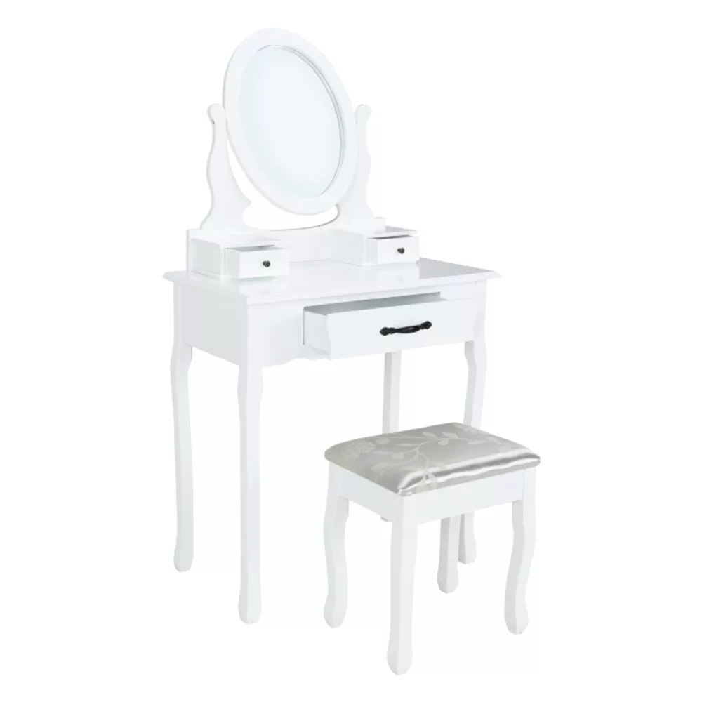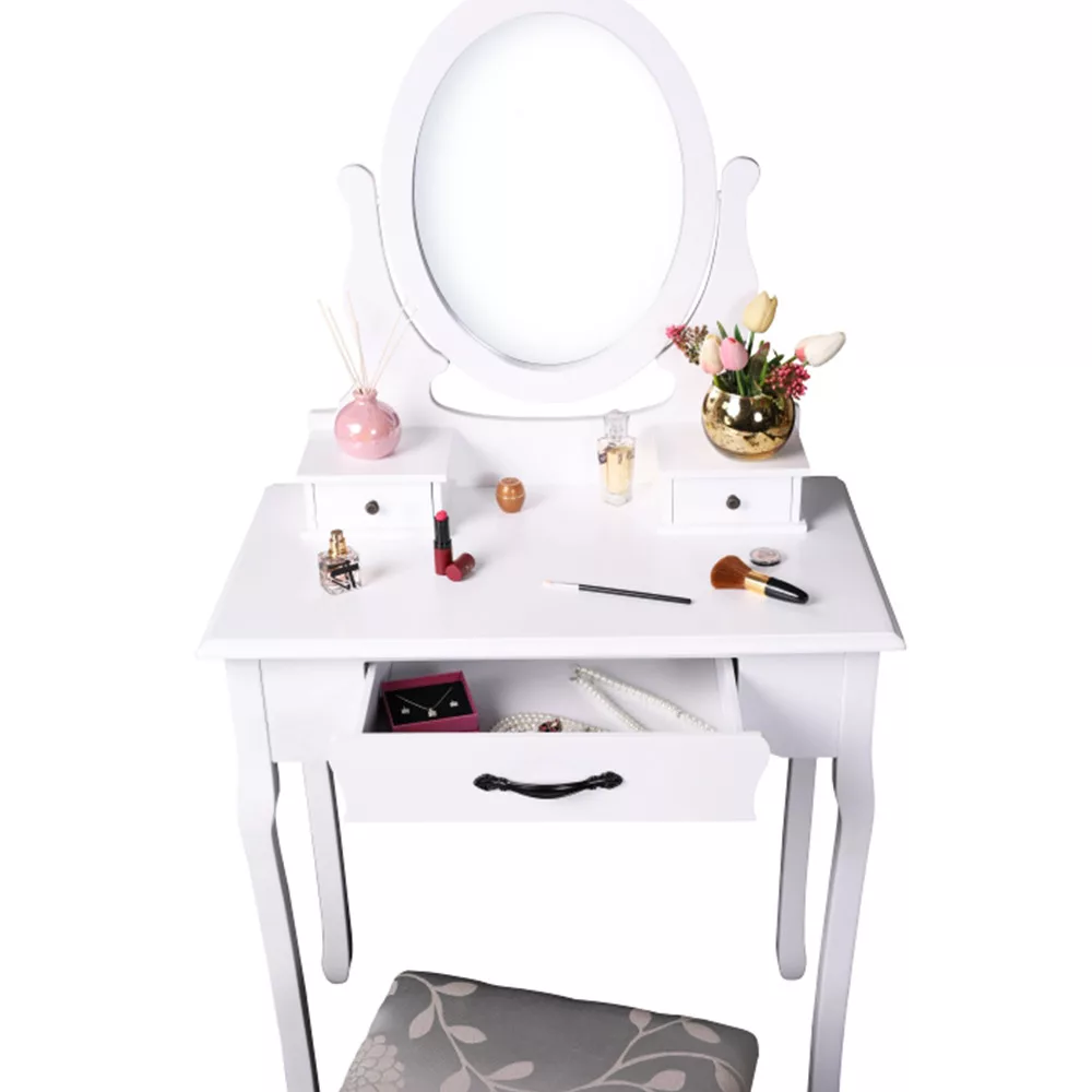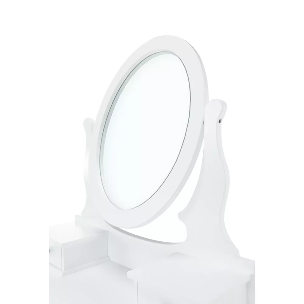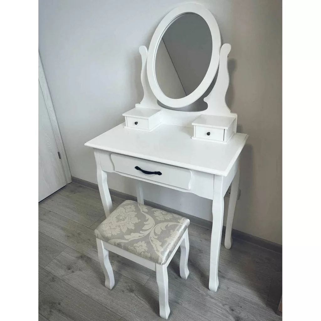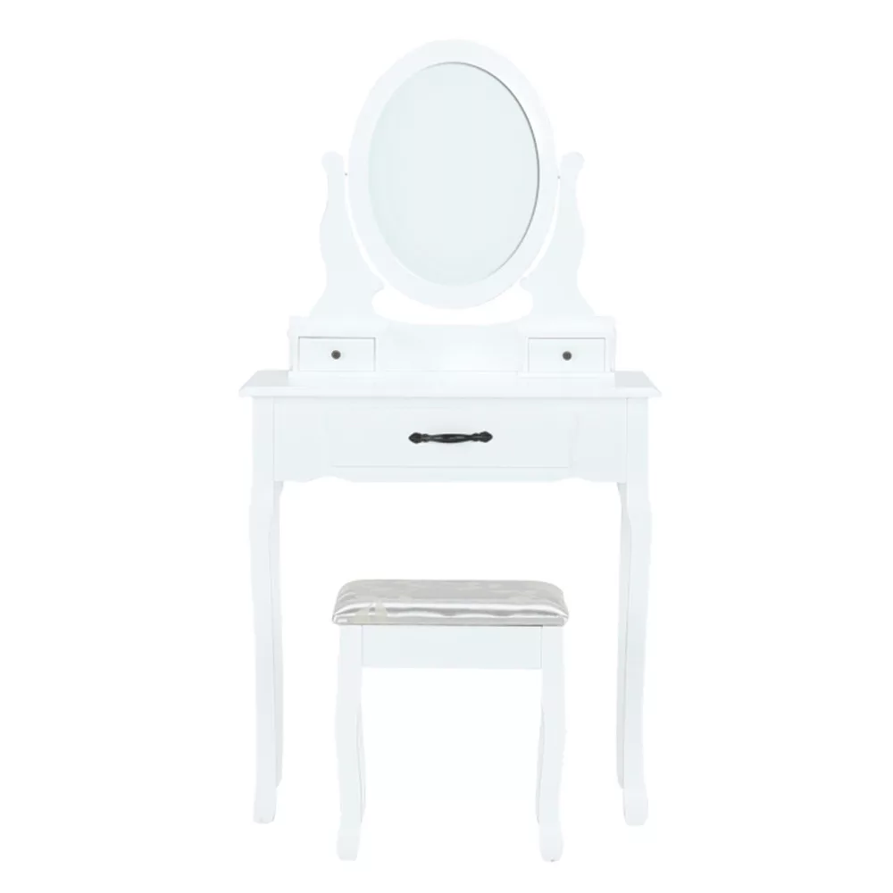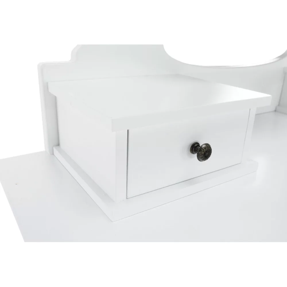 A fehér MDF tiszta kialakítása, a tömör fa lábak és a fém fogantyúk segítségével tökéletes darab lesz a hálószobájához. Ami a fésülködőasztalt különlegessé és kifejezetten hasznossá teszi, az kétségtelenül a tükör, amelynek köszönhetően tökéletesen nézhet ki.