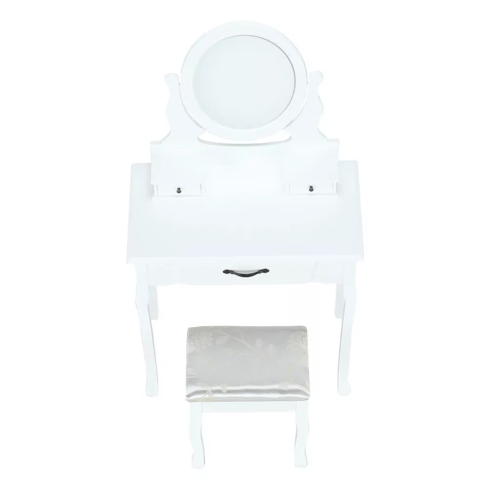 A kisasztalon található központi fiók és a két kisebb fiók elrejt mindent, amire szüksége van. Ezentúl nem lesznek szétszórva a szépségápolási termékek a fürdőszobában. Ez egy ügyes segédeszköz, minden apróság praktikus rendszerezője, amit minden barátnő irigyelni fog.