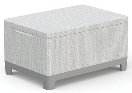 Az asztal egyik legnagyobb előnye a beépített tárolórekesz, amely ideális párnák, kisebb kerti kiegészítők vagy személyes tárgyak rendszerezett elhelyezésére.