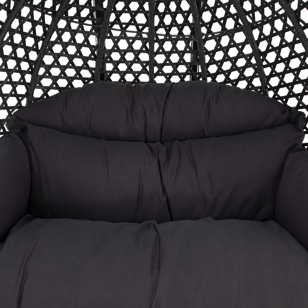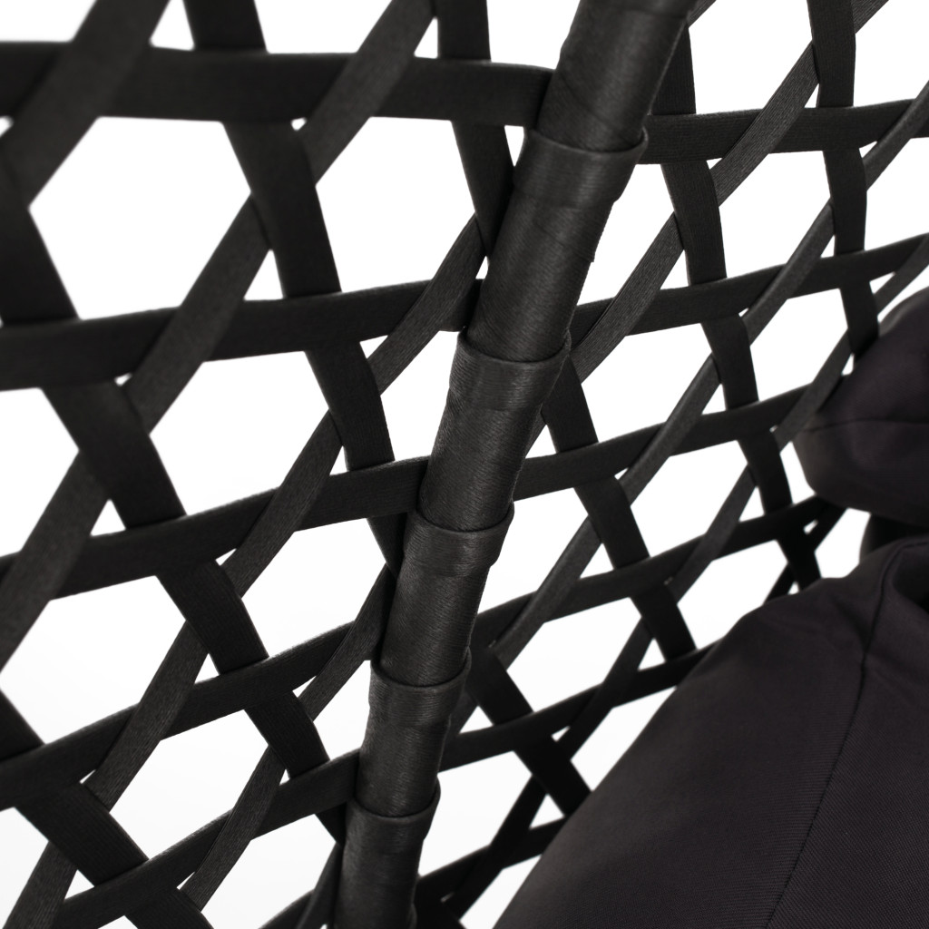 A hintázást az teszi lehetővé, hogy a fotel láncokkal felfüggeszthető egy szilárd fémszerkezetre. A kerti fotel két ember számára alkalmas. Ideálisan kiegészít minden rattanból készült kerti bútor készletet.