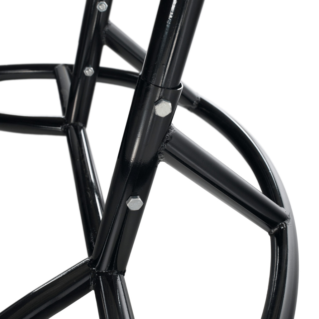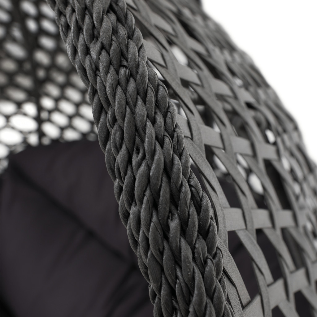 A szék stabilitását az acélból készült és fekete kerek talpazattal ellátott szerkezet biztosítja. Maga a fotel mesterséges rattanból készül, amely rendkívül tartós anyag, ellenáll a változó időjárásnak és az UV sugárzásnak. Kellemes szürke színben kapható.
