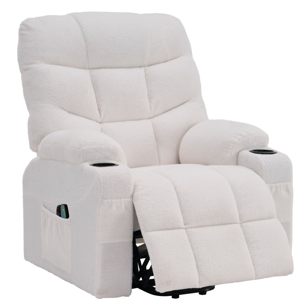 A fotel praktikus tárolóhelyekkel is gazdagított, beleértve az oldalsó zsebeket és ital tartókat, amelyek lehetővé teszik, hogy mindent kéznél tartson anélkül, hogy fel kellene állnia. A szék fehér szövettel van kárpitozva, és acél szerkezettel van kiegészítve. A kényelmes ülésről a sűrű habból készült töltet gondoskodik. Modern, fehér színű kialakítása bármilyen belső térbe illik. Kényeztesse magát maximális pihenéssel és kényelemmel ezzel a fotellel, amely állíthatóságot, masszázst és praktikus funkciókat biztosít a mindennapi kikapcsolódáshoz.