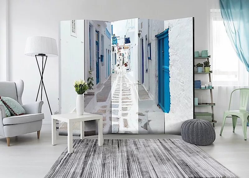A "Mediterrán sikátor" díszítő paraván egy kivételes része a modern beltereknek. A 5-részes, fából készült és kétoldalúan nyomtatott paraván nemcsak diszkréten elválasztja a teret, de hihetetlen megjelenést is biztosít a beltérnek. A tökéletes kivitelezés és a Full HD minőségű eredeti motívumok azt eredményezik, hogy a szobaparaván mindegyik beltér számára utánozhatatlan csábot biztosít. A beltéri díszparaván minden bizonnyal nagyszerű ötlet a helyiség díszítésére. Érdemes megemlíteni a praktikus alkalmazásukat is - a szobaparavánok használhatók pl. a kiteregetett ruhák eltakarására. Nagyon eredeti díszítőelem, mely mind lakásban, mind irodákban egyaránt használható, pl: fodrászszalonban, orvosi rendelőben vagy akár könyvelői irodában is.