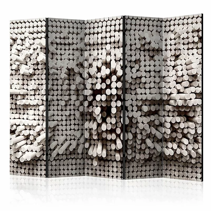 A "Pálca kirakós II" díszítő paraván egy kivételes része a modern beltereknek. A 5-részes, fából készült és kétoldalúan nyomtatott paraván nemcsak diszkréten elválasztja a teret, de hihetetlen megjelenést is biztosít a beltérnek. A tökéletes kivitelezés és a Full HD minőségű eredeti motívumok azt eredményezik, hogy a szobaparaván mindegyik beltér számára utánozhatatlan csábot biztosít. A beltéri díszparaván minden bizonnyal nagyszerű ötlet a helyiség díszítésére. Érdemes megemlíteni a praktikus alkalmazásukat is - a szobaparavánok használhatók pl. a kiteregetett ruhák eltakarására. Nagyon eredeti díszítőelem, mely mind lakásban, mind irodákban egyaránt használható, pl: fodrászszalonban, orvosi rendelőben vagy akár könyvelői irodában is.