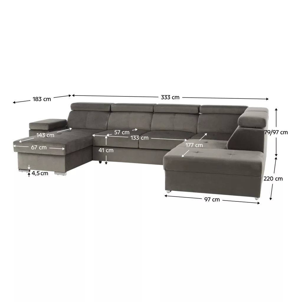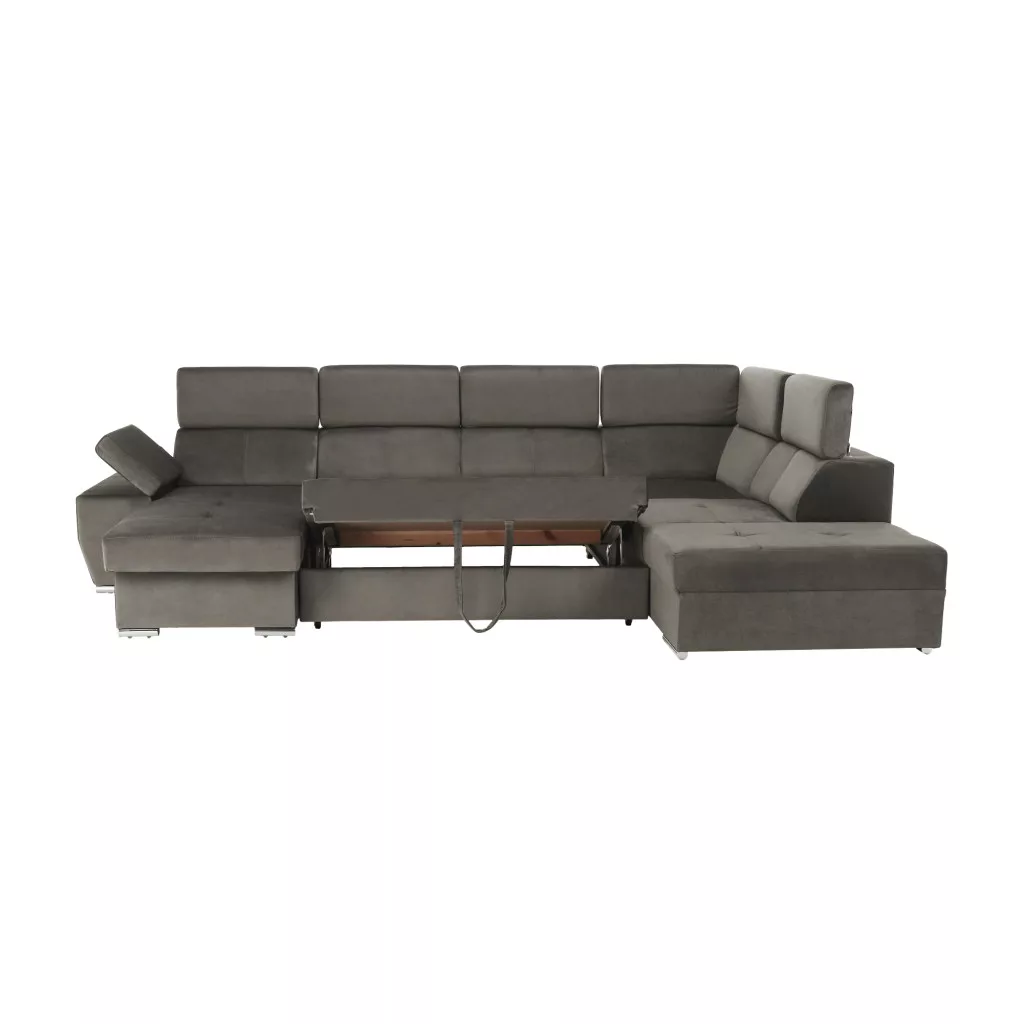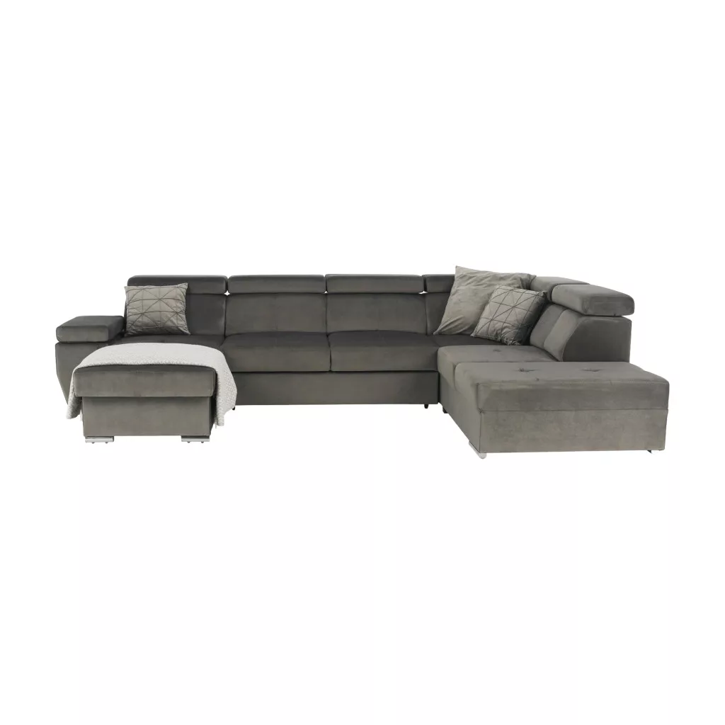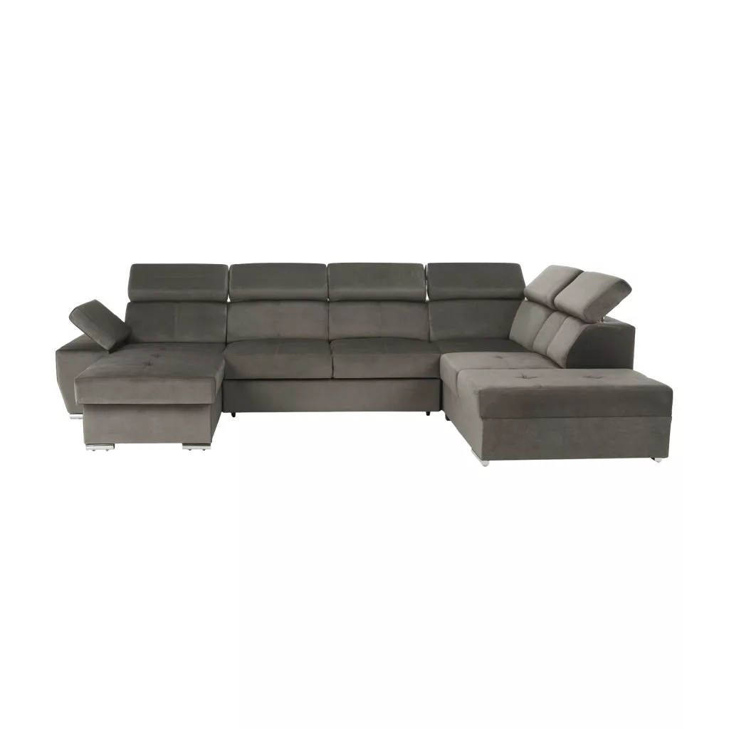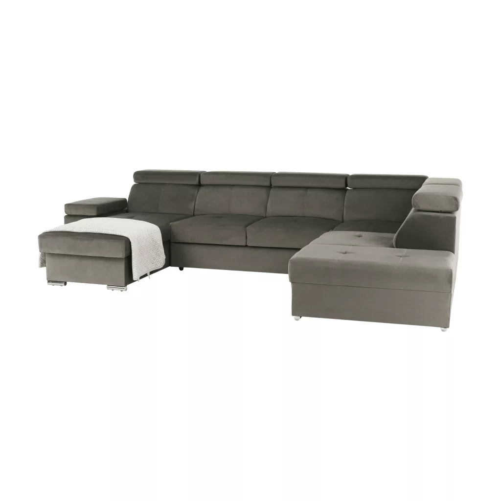 A tágas méretek, amelyet ez az U alakú kanapé kínál, és a jellegzetes, mégis nagyon elegáns szürkésbarna szín kombinációja exkluzivitást és luxust kölcsönöz a nappalijának. További pozitívum a teljesen kárpitozott kivitelezés, minőségű KRONOS szövettel.