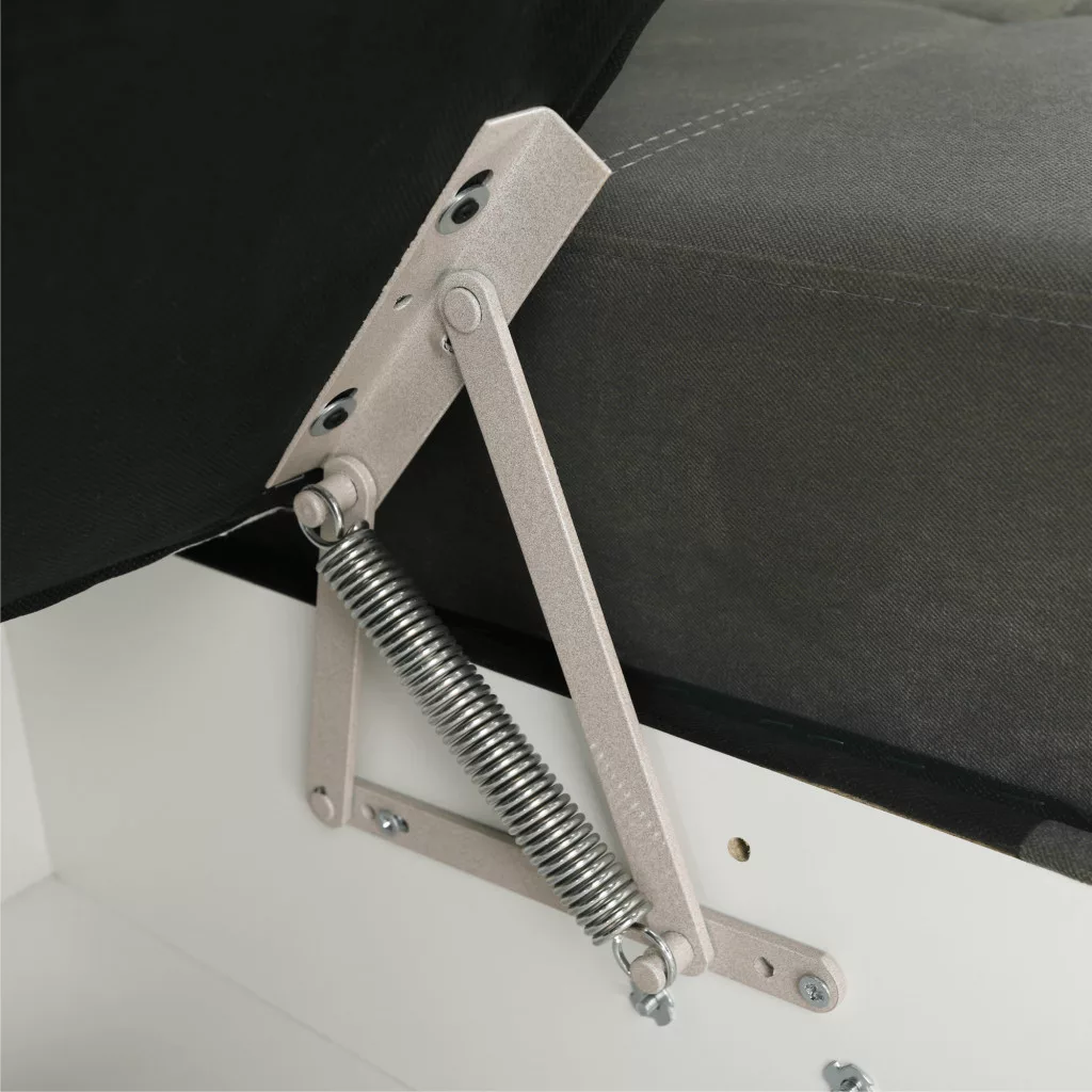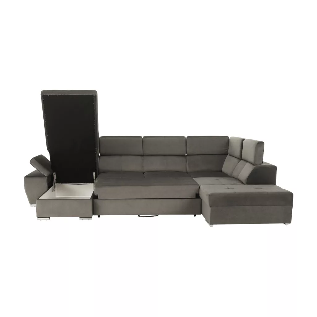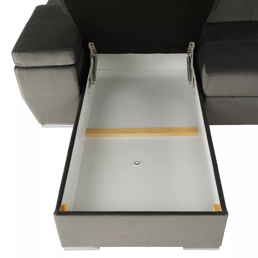 A kanapé tárolóhellyel is rendelkezik. Kinyitható, két ember kényelmesen aludhat rajta. Az alvófelület mérete 129x256 cm. A kanapé 6 fém lábon áll, 4,5 cm magasságban a talajtól.