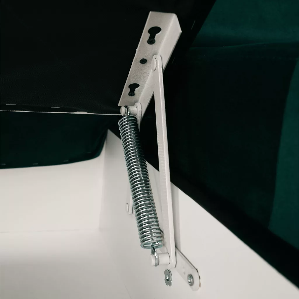 A kanapé tárolóhellyel is rendelkezik. Kinyitható, két ember kényelmesen aludhat rajta. Az alvófelület mérete 129x256 cm. A kanapé 6 fém lábon áll, 4,5 cm magasságban a talajtól.